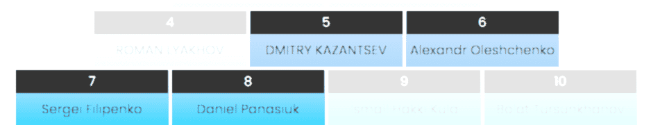 - Players offer matches to players on the left side of their row and to the right of the top row. (ın the example below, Danıel can challenge the other actıve players: sergeı, Alex and Dmitry)